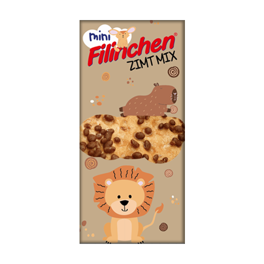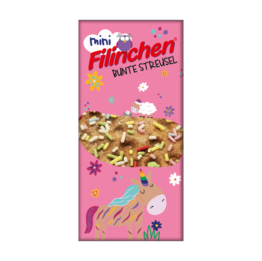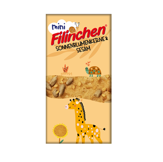 Unsere Minifilinchen – leckeres, bestreutes Waffelbrot in drei unwiderstehlichen Sorten: Sesam-Sonnenblumenkerne, Zucker-Zimt und bunte Streusel.